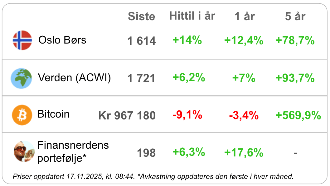 💡Lag din egen portefølje (med noen fond), tilpasset deg og din situasjon. En samling investeringer du kan leve med, også når det stormer på børsene.