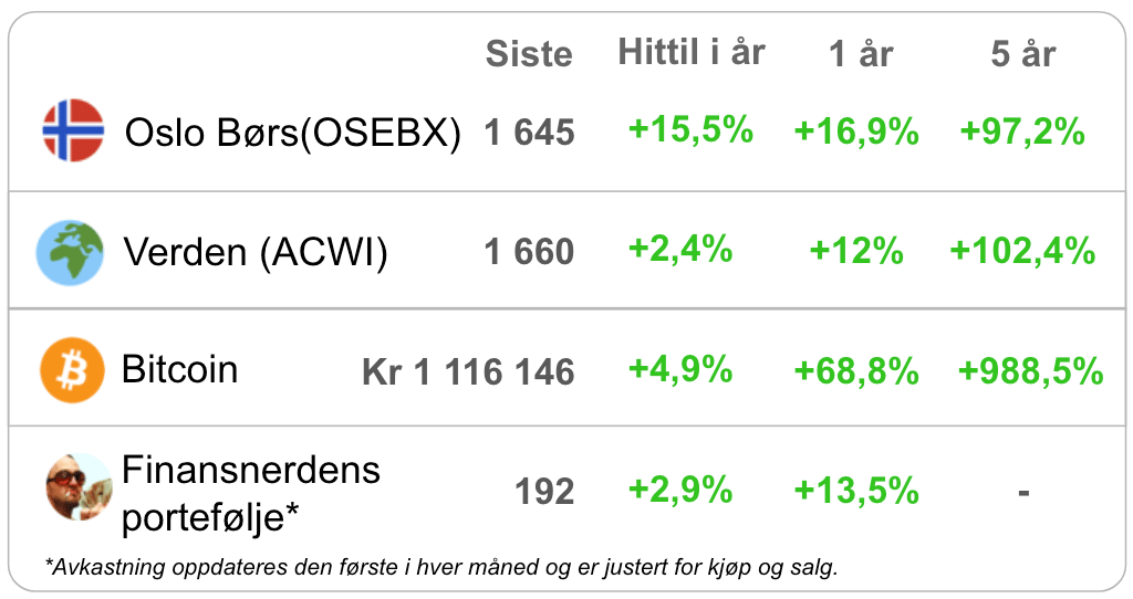 Bli med 15 000+ investorer og få Finansnerdens 5 min. gratis ukentlig nyhetsbrev om sparing og investering.