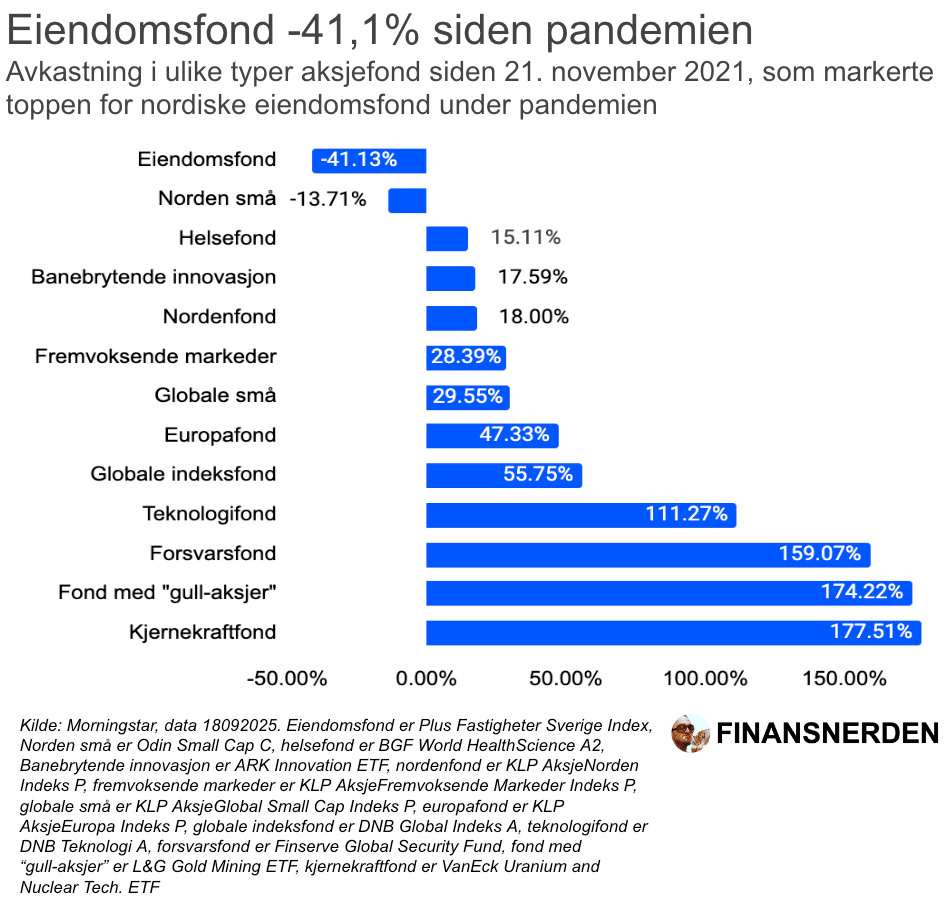 💡Eiendomsfond = investerer i børsnoterte eiendomsselskaper fra landene i Norden, som svenske Balder, Castellum og norske Eiendomspar.