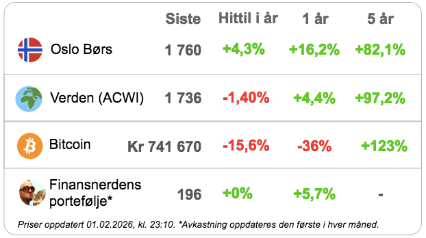 Samlet avkastning siden 31. desember 2024: