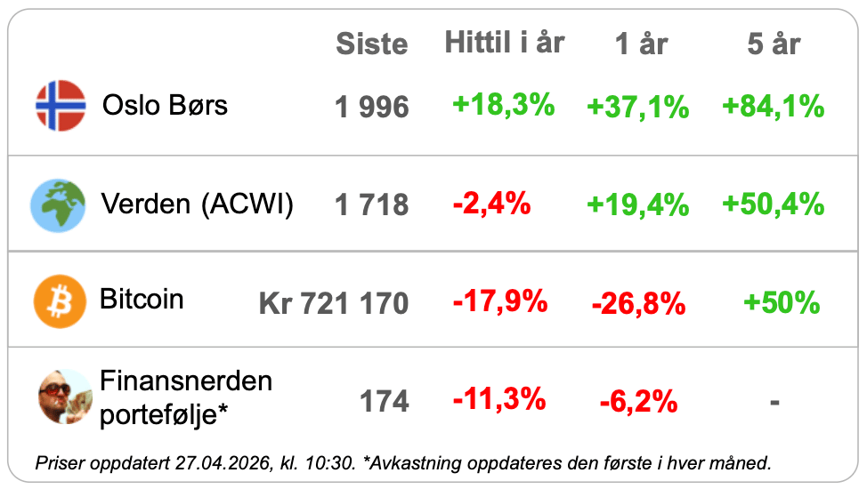 3. Smør på flesk: Si du var investert i fem globale indeksfond i januar 2020.
