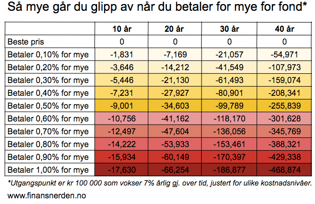 Da ville du gått glipp av nesten 35 000 kroner over 20 år, 100 000 kroner over 30 år og nesten 260 000 kroner over 40 år.