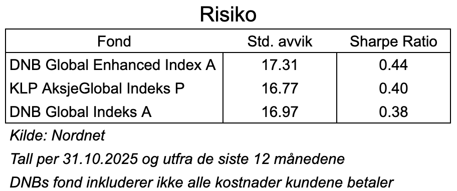 Hva med risikoen? DNB Global Enhanced Index A har levert bra også når vi tar hensyn til svingningene, som har vært litt større.