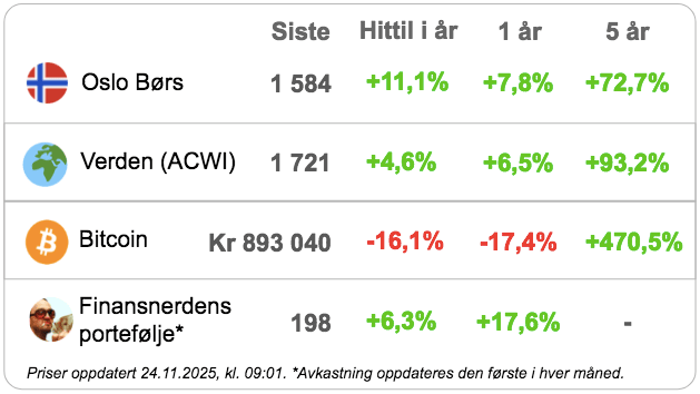 Justert for plattformgebyr blir avkastningen (fra 22. september 2023 til 17. november 2025):