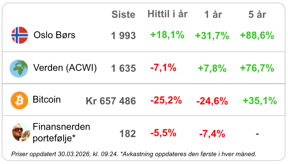 God mandag Reader, Finansnerden her! Nyhetsbrevet som hjelper deg med å gjøre litt bedre valg med sparepengene dine hver uke. I dag med over 17 000 investorer som abonnerer - takk for at du er en av dem!