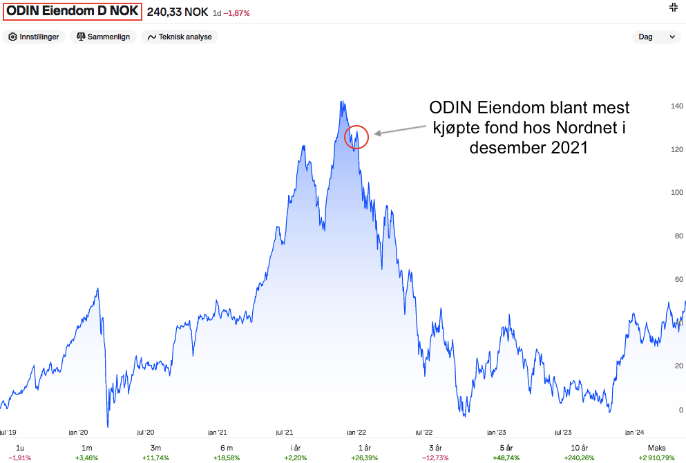 Eller hva med eiendomsfondet ODIN Eiendom, som var blant de mest kjøpte fondene hos Nordnet i desember 2021?