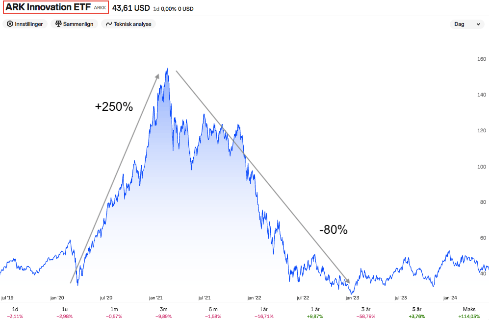 Bare spør alle de som investerte i ARK Innovation ETF under pandemien. Et børshandlet aksjefond som investerer i selskaper som driver med “banebrytende teknologi”.